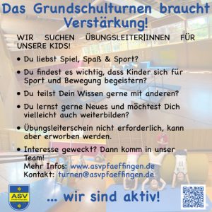 - Trainer*innen für Grundschulturnen gesuchtLust darauf, Kindern den Spaß an der Bewegung zu vermitteln?
