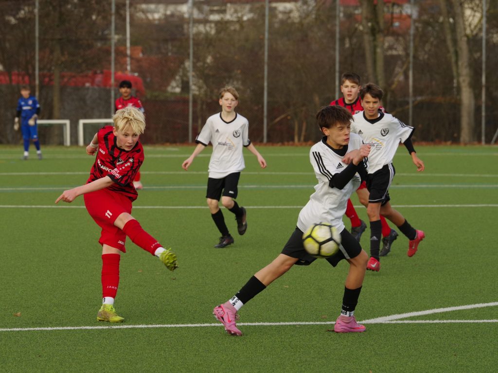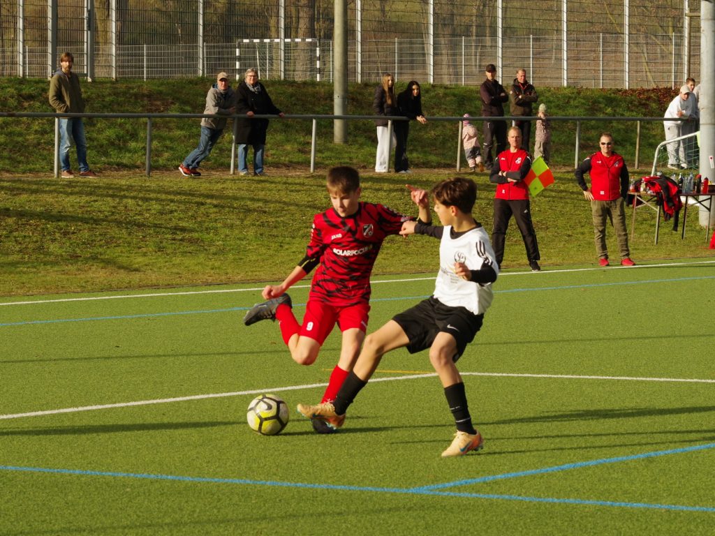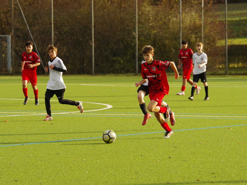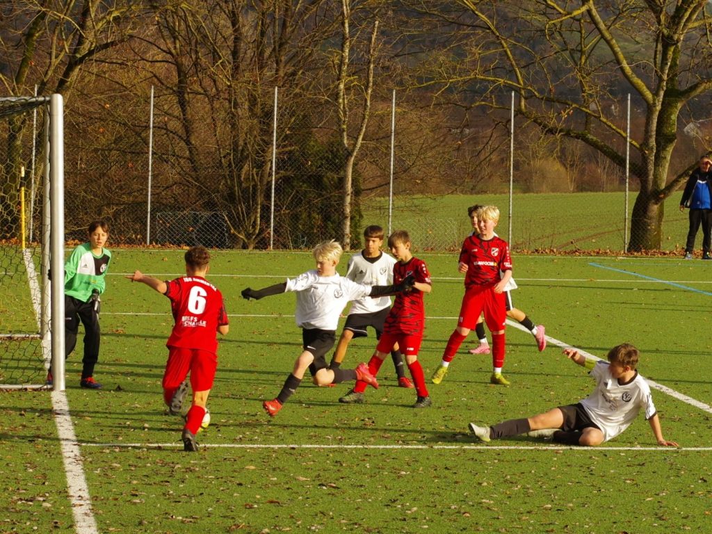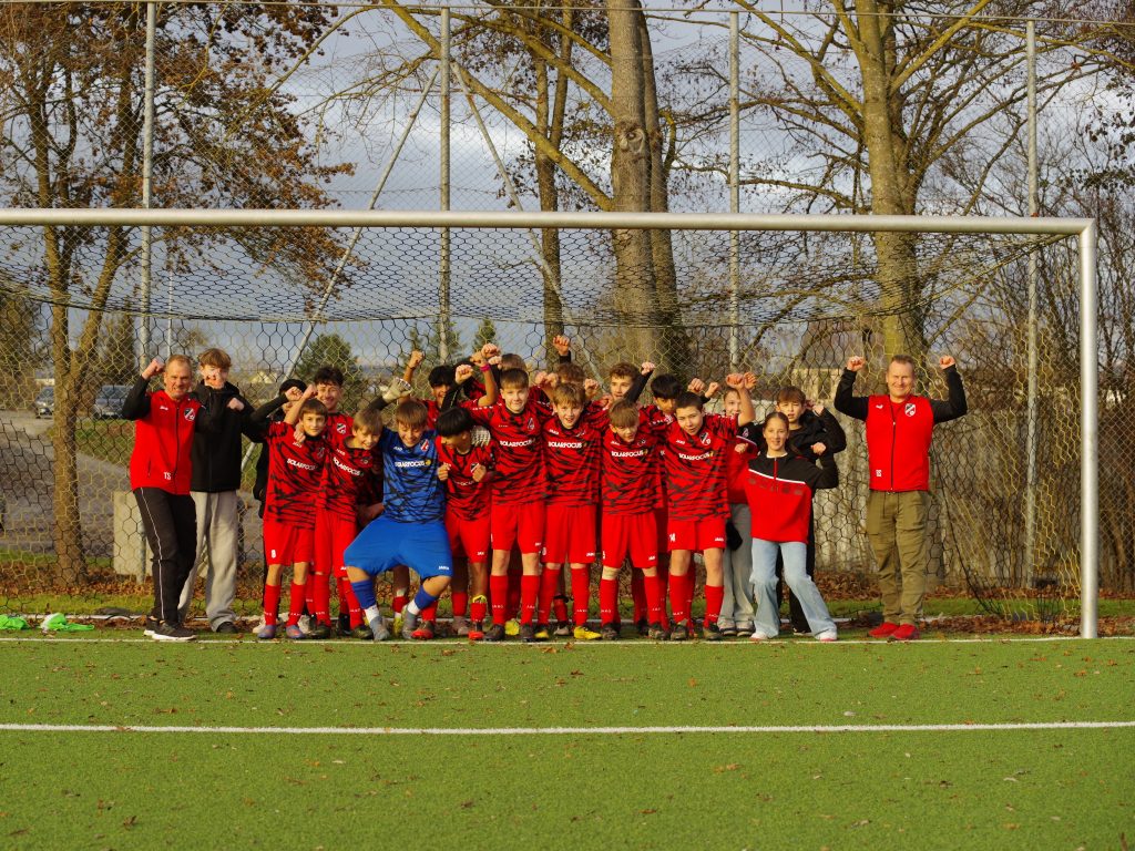 Bei schönstem Spätherbst-Wetter erwischten die Hirschauer den besseren Start und gingen früh in Führung (6.). Wir ließen uns jedoch nicht aus dem Konzept bringen, kamen durch Finn (10.) und Alexej (12.) zu ersten Chancen und hatten etwas Pech bei einem Lattentreffer von Leonard (13.). Der Ausgleich lag förmlich in der Luft: Finn tauchte wenig später frei vor dem Hirschauer Keeper auf und ließ sich diese Chance zum 1:1 nicht entgehen (14.). Unser Aufbauspiel über die Außenpositionen war sehenswert, die Gäste kamen kaum noch zu Entlastungsangriffen. Noch vor der Pause drehte Alexej nach einem Eckball mit seinem Treffer zum 2:1 die Partie (25.). Auch nach dem Seitenwechsel waren wir die spielbestimmende Mannschaft und erhöhten durch Leonard Norz auf 3:1 (43.). Die Zuschauer in Poltringen bekamen ein wahres Offensiv-Spektakel unserer Jungs zu sehen. Mit viel Laufbereitschaft und gutem Stellungsspiel kamen wir immer wieder zu Chancen. Einzig unsere Effizienz vor dem gegnerischen Tor war noch ausbaufähig, es blieb am Ende beim völlig verdienten 3:1-Heimsieg. Mit 28 Punkten aus 11 Spielen haben wir eine erfolgreiche Quali-Runde gespielt und belegen damit den 2. Tabellenplatz hinter dem FC Rottenburg, dem wir zum Aufstieg in die Leistungsstaffel gratulieren.