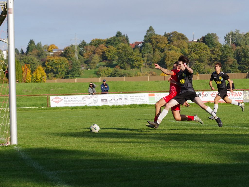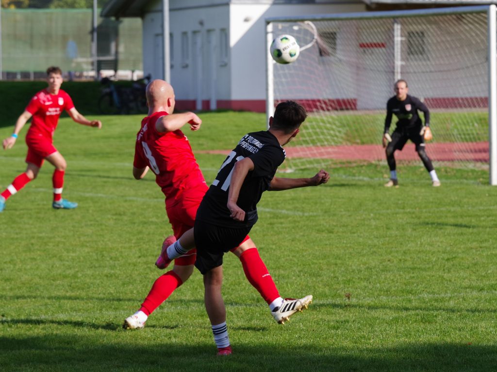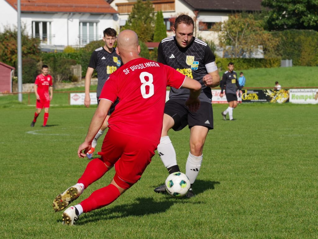 Kalte Dusche für uns in der warmen Herbst-Sonne: Schon nach 3 Minuten stand der Dußlinger Mario Lukic nach einem Abwehrgeschenk am langen Pfosten frei und musste nur noch den Fuß zur 1:0-Führung hinhalten. Der Aufsteiger spielte frech auf und war besser in der Partie. Eine Direktabnahme von Remy Behnke landete über unserem Kasten (19.), während wir uns nur mit langen Bällen in die Spitze zu helfen wussten, die allesamt von der sattelfesten Dußlinger Abwehr abgefangen wurden. Es spricht Bände, dass wir vor dem Halbzeitpfiff nur einen einzigen Torschuss abgaben: Fiore Guido scheiterte aus 16m an Keeper Jan Breuning, der reaktionsschnell die linke Pranke ausfuhr (36.). Auf der anderen Seite musste unser Keeper Pascal Baumgärtner gegen den frei durchgelaufenen Bilkian Abdullah nach Pass von Ali Güvenc Kopf und Kragen riskieren (45.+1). Felix Beeh verletzte sich kurz vor dem Ende der 1. Halbzeit bei einem Zweikampf – wir wünschen unserem Youngster gute Besserung! Für ihn kam nach dem Seitenwechsel Niklas Kaupp in die Partie, der auf der rechten Seite gegen Mateo Vlaho einen schweren Stand hatte, aber nach einem der wenigen Abwehrfehler der Gastgeber frei vor Jan Breuning auftauchte und das Leder zum 1:1-Ausgleich über die Linie schlenzte (58.). Er hätte sogar zum Matchwinner werden können, als er nach Pass von Timo Prokopp wieder vor dem Dußlinger Keeper freistand, dieser aber glänzend parierte (60.). Es war die einzige Phase im gesamten Spiel, in der wir Übergewicht hatten. Ansonsten dominierten leider Fehlpässe und ungewohnt wacklige Abwehraktionen – so auch bei der 2:1-Führung von Mario Lukic, die wir den Gastgebern quasi auf dem Silber-Tablett servierten (74.). Auch in Überzahl nach einer Roten Karte gegen Keeper Jan Breuning wegen einer Notbremse bekamen wir unser Spiel nicht auf den Platz. Die größte Chance zum Ausgleich hatten wir somit nach einem Standard: Nach Stefan Göhrings Freistoß setzte Alexander Beck das Leder links am Dußlinger Kasten vorbei (88.). Als wir in der Nachspielzeit alles nach vorn warfen, machte der Aufsteiger letztlich nicht unverdient mit dem 3:1 den Deckel auf diese Partie (90.+6). Nach dem perfekten Saison-Start sind wir mittlerweile auf Platz 3 abgerutscht und müssen uns schnell wieder auf unsere Stärken besinnen und klaren Fußball spielen.