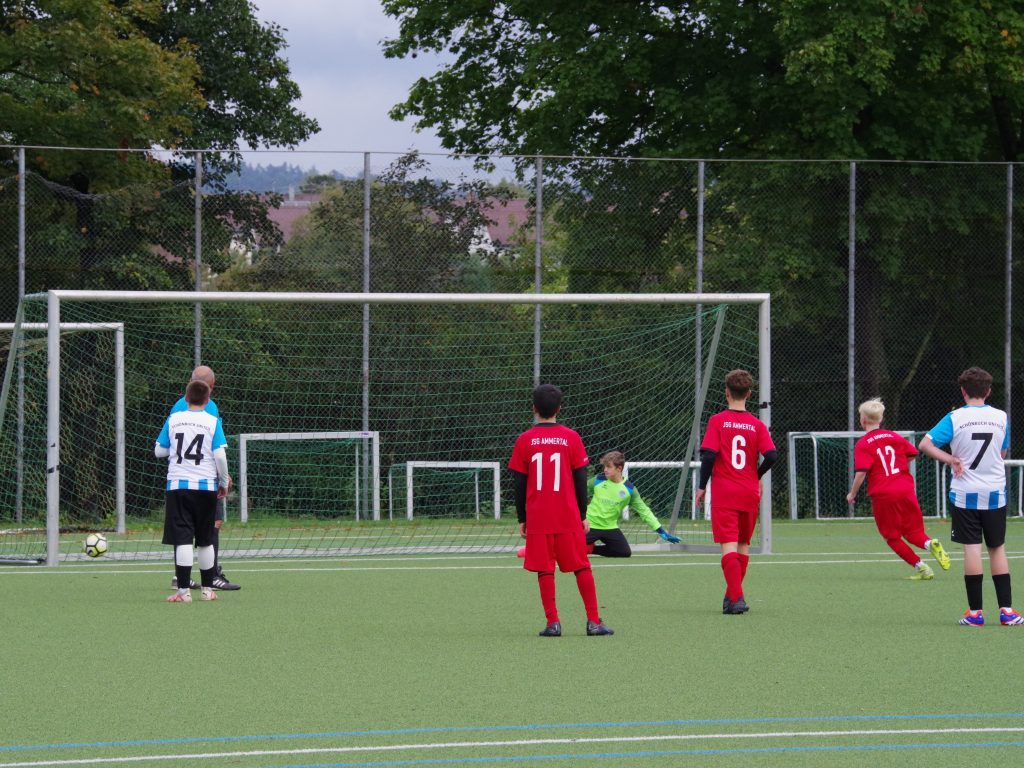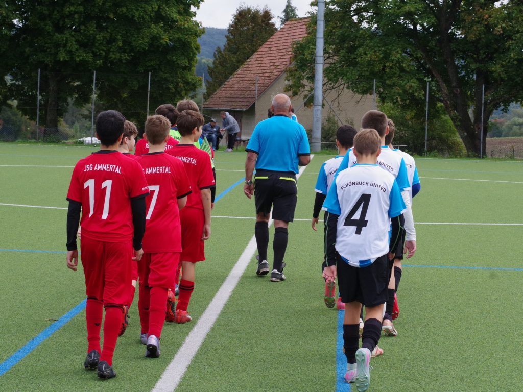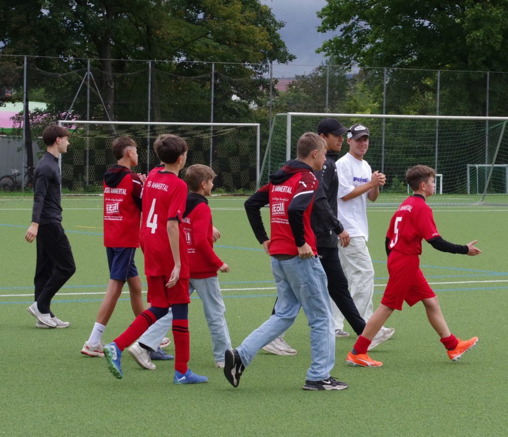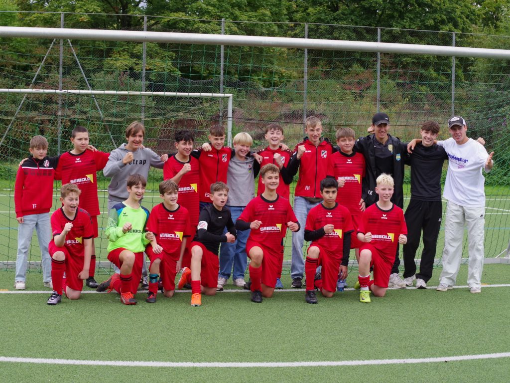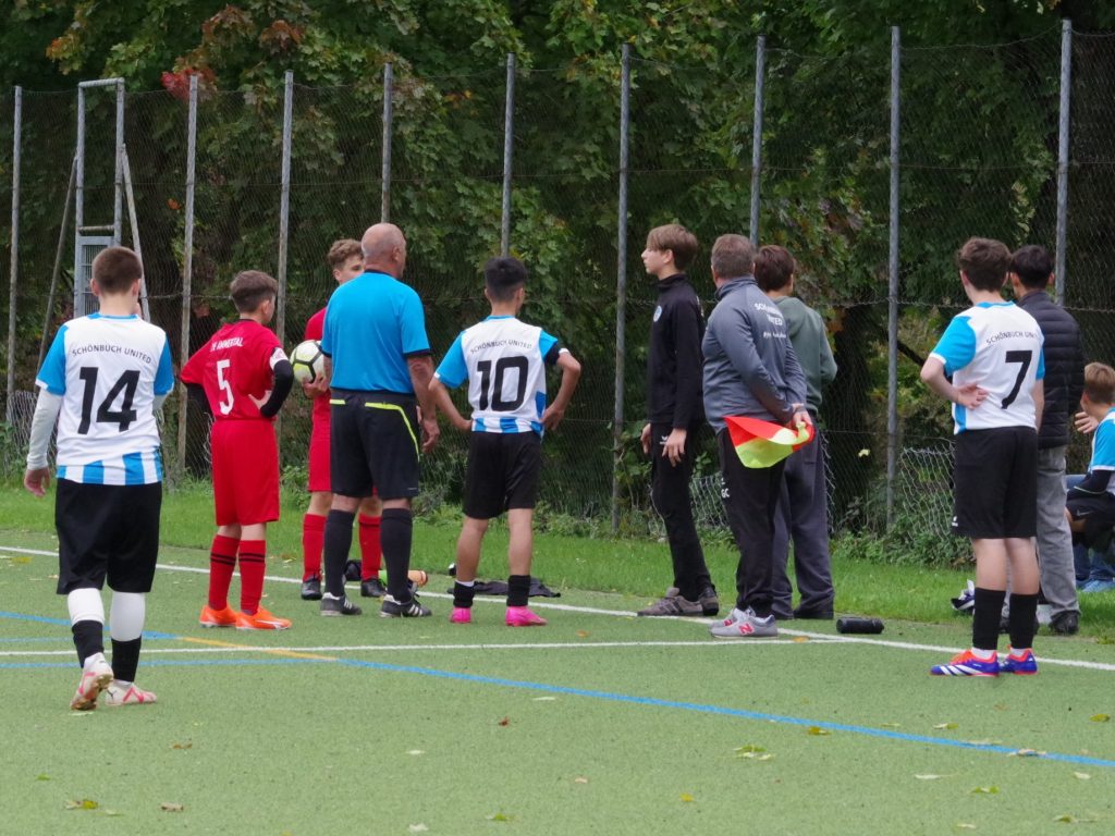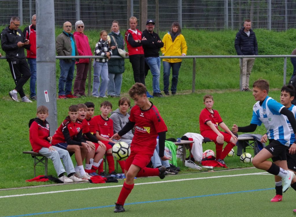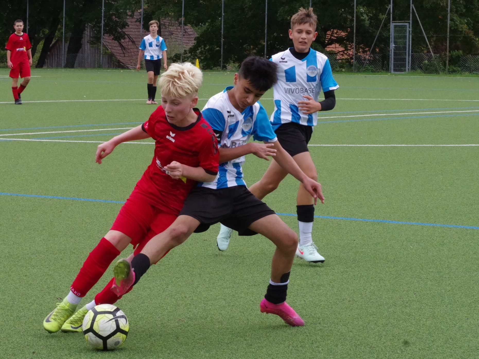 Die Heimspiel-Premiere ist geglückt! Unser neues C2-Trainerteam Jonathan Batte und Niklas Kaupp pushte unsere Jungs sehr engagiert von der Seitenlinie, als die Gäste im ersten Abschnitt zunächst die Initiative übernahmen und nicht unverdient im Nachschuss nach einem Lattentreffer in Führung gingen (12.). Mit zunehmender Spielzeit bekamen wir die Partie jedoch immer besser in den Griff und erarbeiteten uns erste Chancen. Trotz Rückstands kam jede Menge Energie von außen, jeder Ballgewinn wurde auf der Ersatzbank gefeiert. Leonard Norz besorgte vor dem Seitenwechsel per Strafstoß den 1:1-Ausgleich (26.), der uns Selbstvertrauen gab, dass hier etwas möglich ist. Der wieselflinke Arman Marvi sorgte im zweiten Abschnitt immer wieder für Gefahr , die Gäste wirkten in der Abwehr nicht mehr so stabil wie zuvor. Das nutzte Leonard Norz mit einem schönen Heber ins Glück, als er sich im Zentrum gegen drei Gegenspieler durchsetzte und das Leder über den Gäste-Keeper in die Maschen setzte (60.) – damit war die Partie gedreht. In einer zunehmend hektischeren Atmosphäre machte Arman Marvi mit seinem Strafstoß-Treffer zum 3:1 den Deckel auf diese Partie (62.). Samuel Huber hätte sogar noch erhöhen können, scheiterte aber aus kurzer Distanz am Gäste-Keeper (65.). Aufgrund der deutlichen Leistungssteigerung in der zweiten Halbzeit war es am Ende ein verdienter Sieg unserer Jungs. Leider wurde die Partie überschattet vom unsportlichen Verhalten der Gäste mit Beleidigungen des Schiedsrichters. Unabhängig vom Spielstand sollte aus unserer Sicht immer der Fair-Play-Gedanke für Spieler und Verantwortliche im Vordergrund stehen.