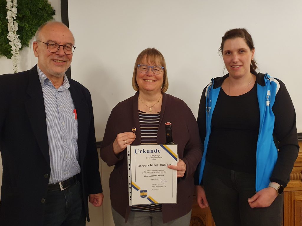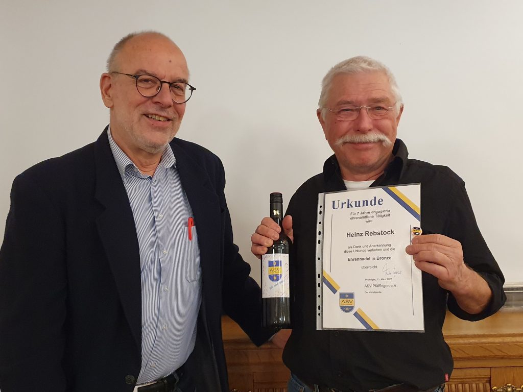 Am vergangenen Freitag, den 13., lud der ASV Pfäffingen zur jährlichen Mitgliederversammlung. In geselliger Atmosphäre wurde auf die Ereignisse des vergangenen Jahres zurückgeblickt und ein Ausblick auf die kommenden Monate gegeben. Wie der erste Vorsitzende Fritz Haas in seinem Bericht augenzwinkernd bemerkte, war 2025 ein Jahr „ohne besondere Vorkommnisse“.  Verschiedene Projekte wurden fertiggestellt und andere angestoßen: Unter Leitung von Jürgen Göhlich wurde das LED-Flutlicht in Betrieb genommen und bei deutlich verbesserter Ausleuchtung des Platzes verbraucht es nur noch ein Viertel des Stroms. Die Boule Bahn wurde durch die „Jedermänner und Frauen“ fertiggestellt, federführend war hier Rudi Hägele. Unter Beteiligung einiger Eltern wurde auch unser Kinderspielplatz renoviert. Vielen Dank an die Initiatoren und Helfer! In Ihren Berichten blickten die Abteilungsleiter auf die sportlichen und geselligen Höhepunkte des vergangenen Jahres zurück, besonders hervorzuheben: das 30-jährige Bestehen des Lauftreffs unter Leitung von Silke Jäger und die großartigen Mannschafts- und Einzelerfolge der Leistungsturnerinnen!
