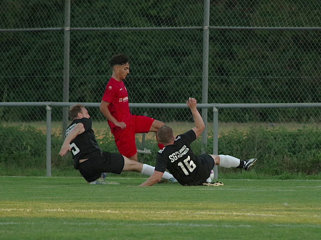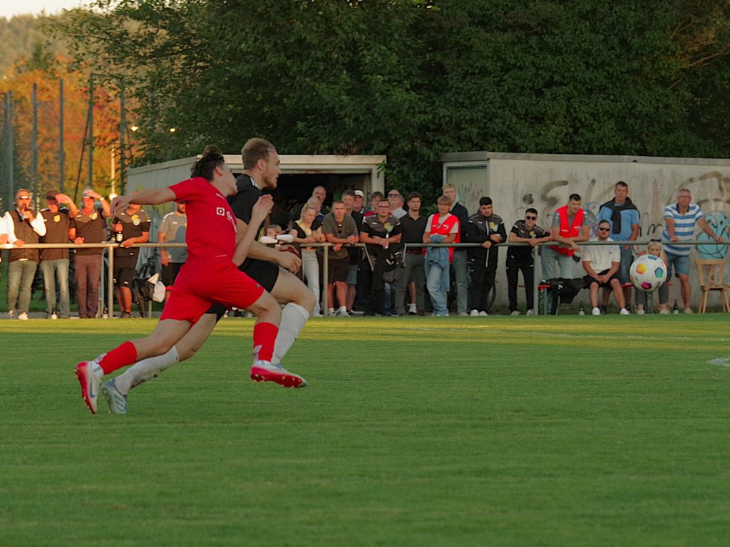 Nach dem Seitenwechsel wollte Ofterdingen die Partie entscheiden, doch unsere Abwehr und der glänzend aufgelegte Torwart Pascal Baumgärtner hielten dagegen. Immer wieder setzten wir Nadelstiche nach vorne. In der 50. Minute hätte Fiore Guido nach einer Traumflanke von Marcel Schmid beinahe den Ausgleich erzielt – akrobatisch gemacht, aber leider knapp vorbei. Kurz darauf wurde Alex Norz im Strafraum vom gegnerischen Torhüter zu Fall gebracht. Den fälligen Elfmeter verwandelte Lukas Hartmann eiskalt zum 1:1.