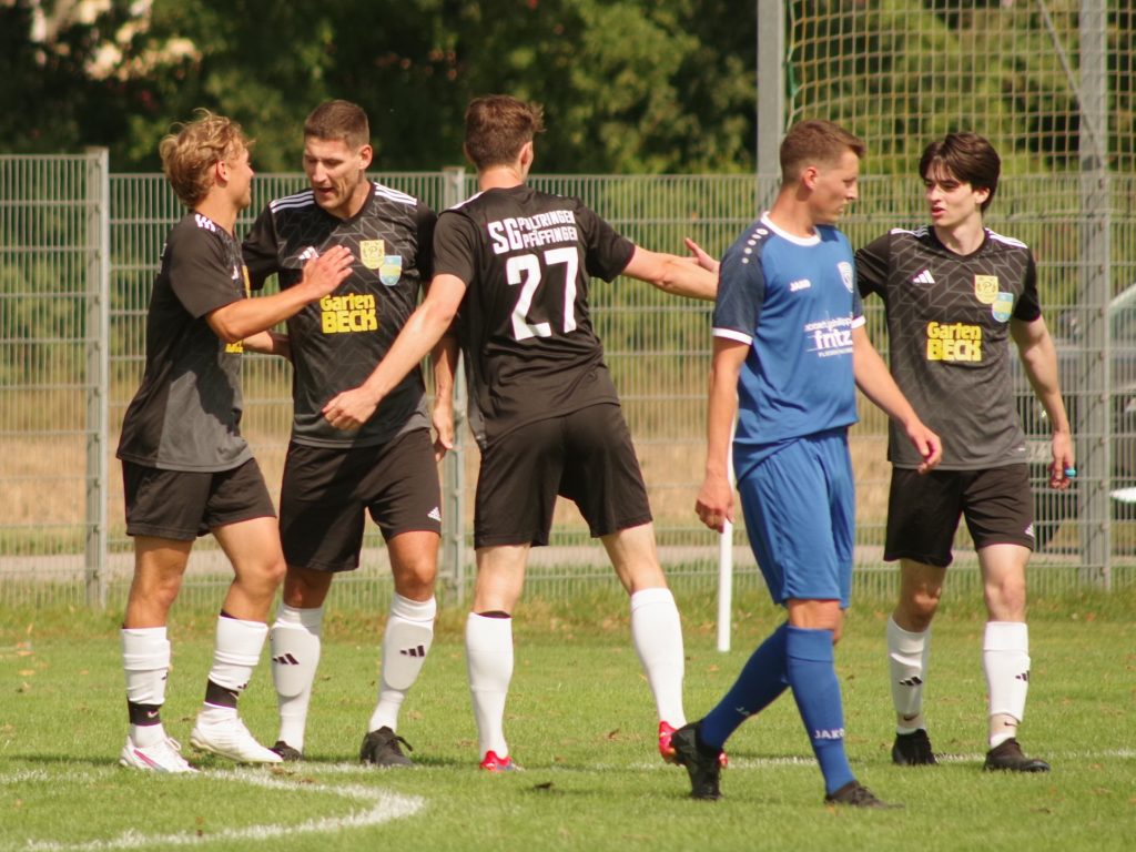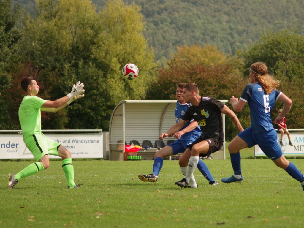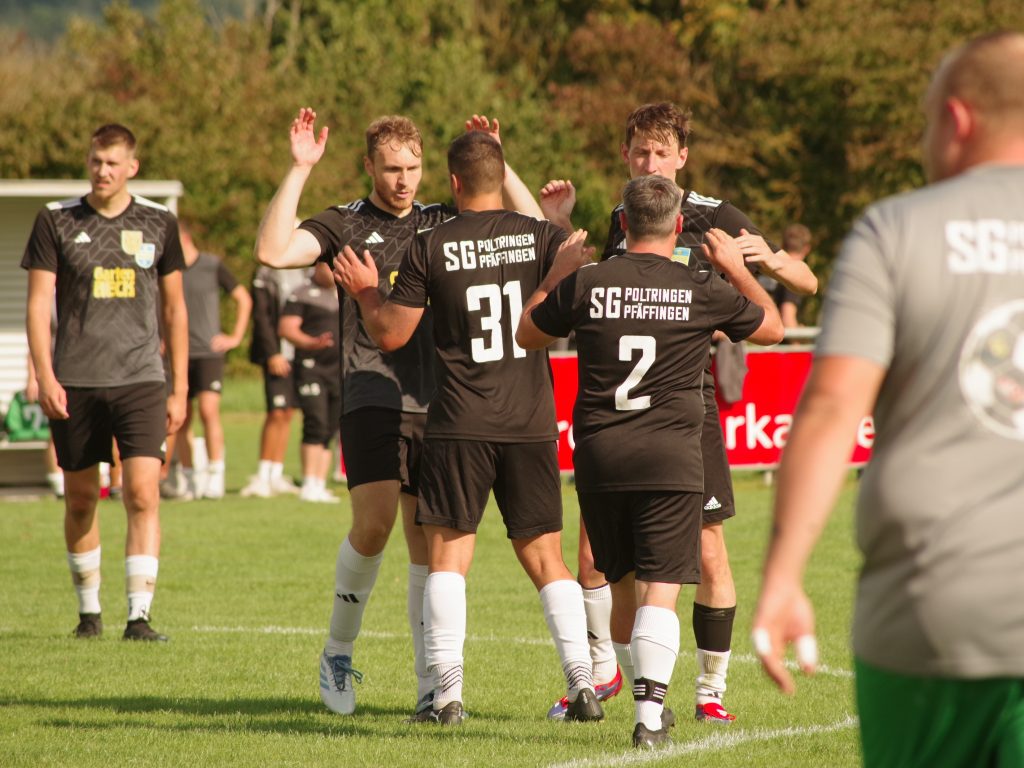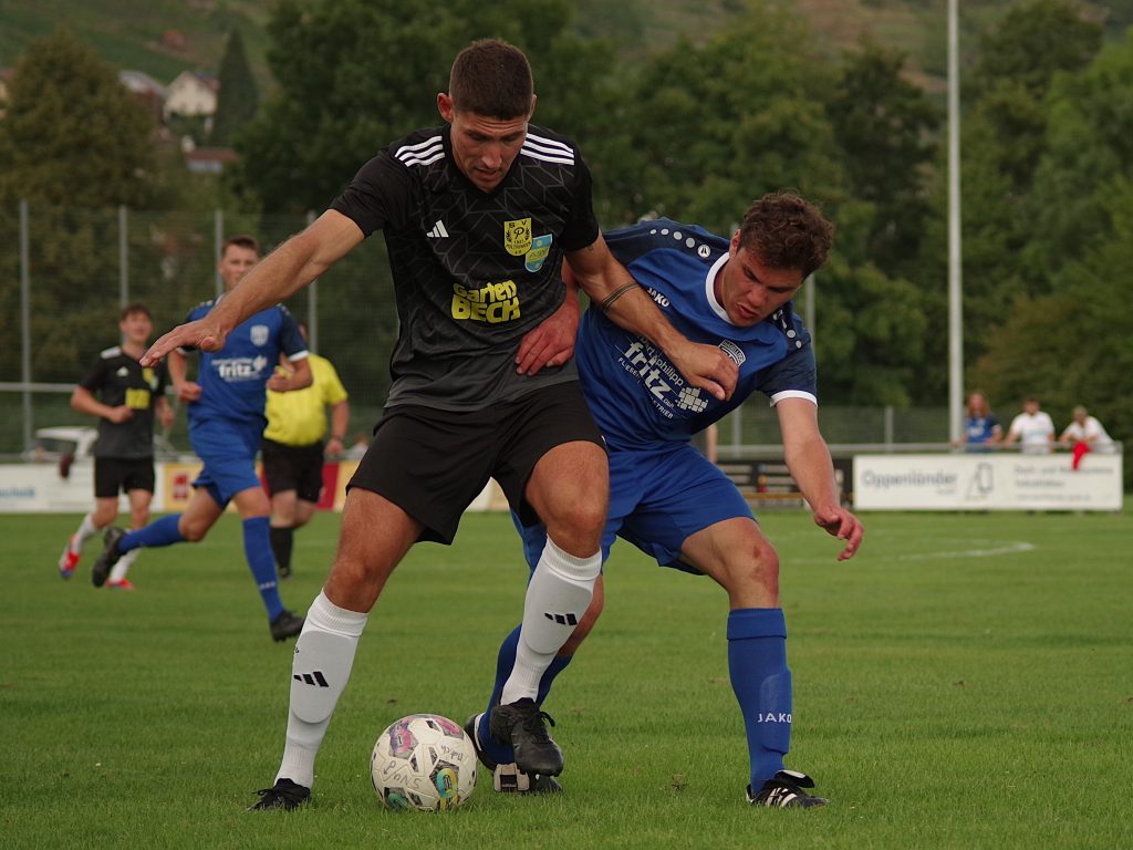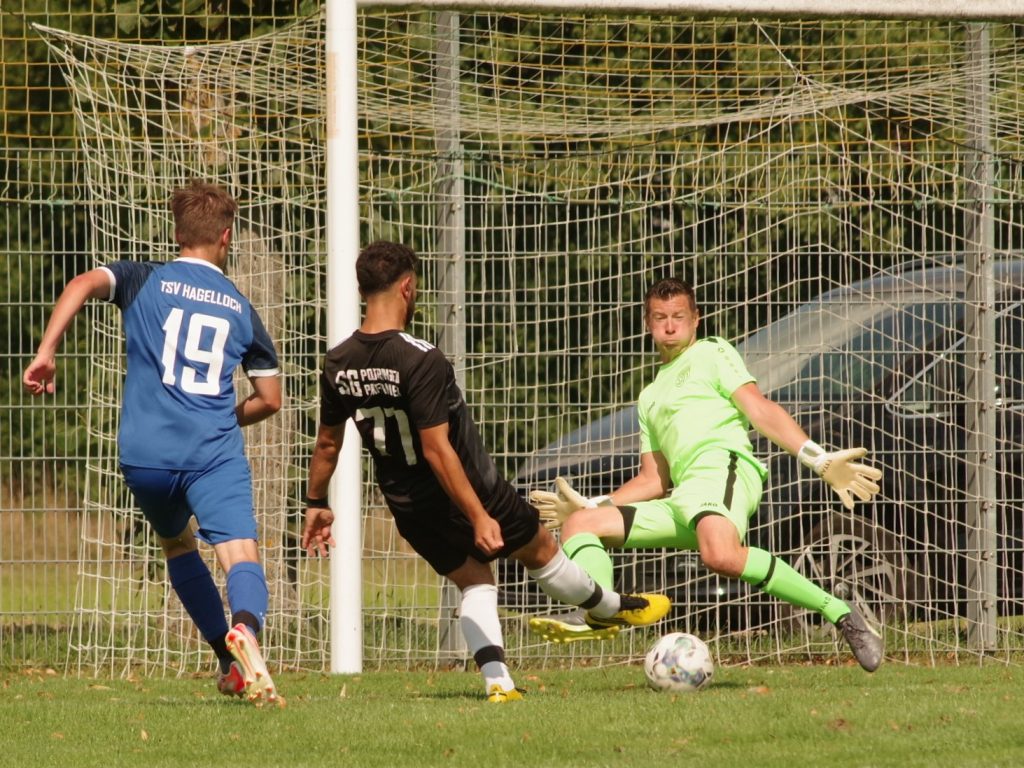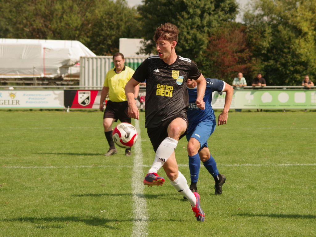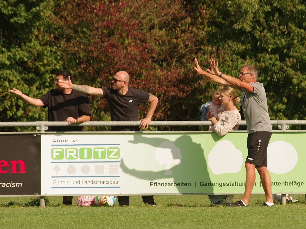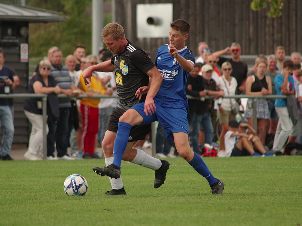 Nach einer halben Stunde hatte wohl niemand unter den etwa 300 Zuschauern geglaubt, dass dieses Spiel noch ein echter Derby-Fight werden würde. Wir konnten bis zu diesem Zeitpunkt im Mittelfeld schalten und walten, dominierten die Partie nach Belieben und lagen bereits mit 2:0 durch einen Doppelpack von Mike Kittel in Front. Nur 40 Sekunden nach dem Anpfiff versenkte er eine Flanke von Fiore Guido zum 1:0 (1.) und wenig später einen Pass von Lukas Hartmann zum 2:0 (10.). Eine umstrittene Entscheidung gab der Partie jedoch eine ungeahnte Wendung. Moritz Batte ergatterte einen zu kurz geratenen Rückpass der Gastgeber, lief auf seinen ehemaligen A-Jugend-Mitspieler Jakob Hölle als letzten Abwehrmann zu und kam zu Fall – Schiedsrichter Armin Sigler zeigte die Rote Karte (30.). In Unterzahl spielte Hagelloch/Unterjesingen plötzlich Fußball und brachte uns gehörig in Schwierigkeiten. Ein Schuss aus der Drehung von Janick Speth landete noch knapp rechts über dem Kasten (34.), aber wenig später traf Julian Wehner nach Vorarbeit von Matthias Loy ins lange Eck zum 2:1-Anschlußtreffer (39.). Auch nach dem Seitenwechsel witterten die Gastgeber ihre Chance. Mittelfeld-Motor Max Leibfahrt war jetzt kaum noch zu stoppen – spielten wir wirklich in Überzahl? Matthias Loy hatte per Kopf die Riesen-Chance zum Ausgleich, aber unser Keeper Pascal Baumgärtner parierte (53.). In einer zunehmend hitzigen Atmosphäre brauchten wir unbedingt das dritte Tor: Der aktuell in bestechender Form agierende Jesse Lechner beruhigte die Nerven aller Gäste-Fans und nagelte die Kugel aus kurzer Distanz zum 3:1 unter die Querlatte (56.) – und sorgte damit wieder für mehr Spielkontrolle. Unser eingewechselter Routinier Patrick Walter prüfte Keeper Timo Drescher mit einem 20m-Knaller (73.), bevor wir uns durch die Gelb-Rote Karte für Stefan Göhring wieder in gefährliches Fahrwasser begaben (77.). Der darauffolgende Freistoß wurde von Keeper Timo Drescher aus der eigenen Hälfte nach vorne geschlagen, wo Julian Wehners Schuss vom Innenpfosten ins Tor sprang (79.). Sein Doppelpack zum 3:2-Anschlußtreffer sorgte nun endgültig für hektisches Treiben auf beiden Seiten. Glück für uns, dass der eingewechselte Lion Rittsteiger aus 5m das leere Tor nicht traf (83.), bevor Malte Stauß als letzter Mann gerade noch retten konnte (88.). Die wilde Schlussphase war nichts für schwache Nerven. Wir kassierten in der Nachspielzeit noch weitere 4 Gelbe Karten von Schiedsrichter Armin Sigler, dem aus unserer Sicht das Fingerspitzengefühl für diese Partie fehlte. Mit vereinten Kräften verteidigten wir hinten alles weg und sicherten am Ende den 3:2-Sieg gegen eine aufopferungsvoll kämpfende SGM Hagelloch/Unterjesingen, die sich trotz des frühen Rückstands und der zwischenzeitlichen Unterzahl nie aufgab und uns alles abverlangte, was in einem Derby gefordert ist.