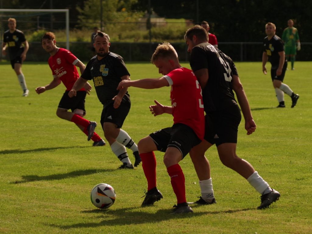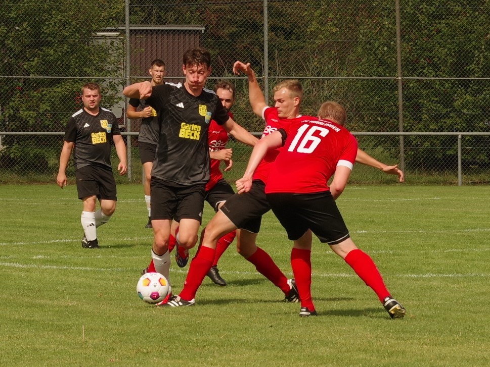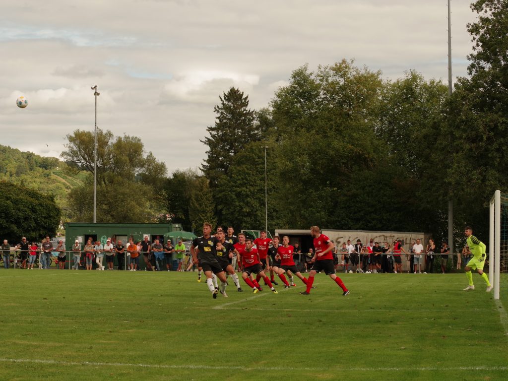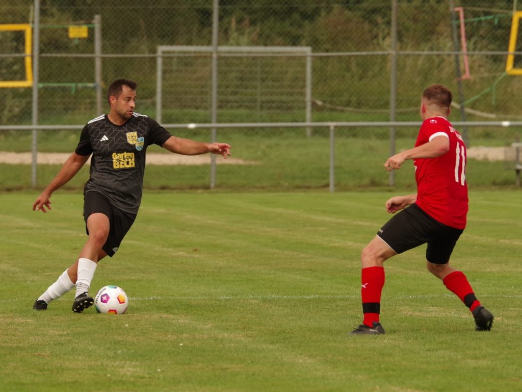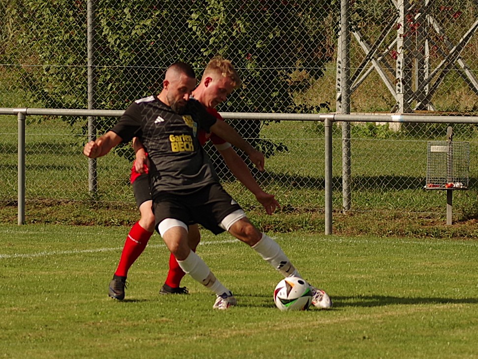 Die Spieler des SV Hirrlingen werden sich nach dem Abpfiff wohl gefragt haben, wie sie diese Partie noch aus der Hand geben konnten. In den ersten 45 Minuten zeigten uns die Gäste klar die Grenzen auf. Schon nach 1 Minute musste unser Keeper Pascal Baumgärtner klären, ein Abschluss durch Oliver Ambacher verfehlte knapp das Ziel (5.). Das 0:1 durch Philip Daub fiel deshalb nicht unerwartet (16.), auch wenn dem Treffer aus unserer Sicht ein Handspiel vorausging. Wir wurden nun etwas zielstrebiger in unseren Aktionen, aber nicht zwingend: Jesse Lechner scheiterte nach Flanke von Mike Kittel am Hirrlinger Keeper Tobias Wagner (23.). während die Gäste weiterhin ein gepflegtes Offensivspiel mit gefährlichen Pässen in die Tiefe anboten (30./34.). Vor der Pause verletzte sich Jesse Lechner bei einem Luftduell unglücklich am Kopf und musste ausgewechselt werden – wir wünschen ihm gute Besserung! Nach der Pause drückten die Hirrlinger weiter auf das zweite Tor: Burak Aygün lief bis zur Grundlinie durch, flankte auf Oliver Ambacher, dessen Kopfball am Querbalken landete (46.) – das Spielglück stand uns hier nochmals zur Seite, aber andererseits war es nur 1 Tor Rückstand. Ein Standard war die Initialzündung, dass hier vielleicht doch noch etwas möglich ist: Fiore Guido fand die Lücke neben der Mauer und setzte einen Freistoß an Freund und Feind vorbei zum 1:1-Ausgleich in die Maschen (62.) – danach gab es kein Halten mehr. Mit Kampfgeist und Laufbereitschaft rissen wir die Partie in der letzten halben Stunde an uns. Lukas Hartmann scheiterte per Kopf (65.), danach lief unser Joker Patrick Walter zu Höchstform auf. Zwar verzog er zunächst noch knapp (67.), stand jedoch nach einem kapitalen Schnitzer der Hirrlinger Abwehr plötzlich frei vor dem Gäste-Keeper und stellte auf 2:1 (83.) – damit war die Partie gedreht. Aufgrund der deutlichen Leistungssteigerung zum Ende der Partie war es ein nicht unverdienter Sieg des Willens, der uns mit 9 Punkten nach 3 Spieltagen eine makellose Bilanz in der Liga beschert.